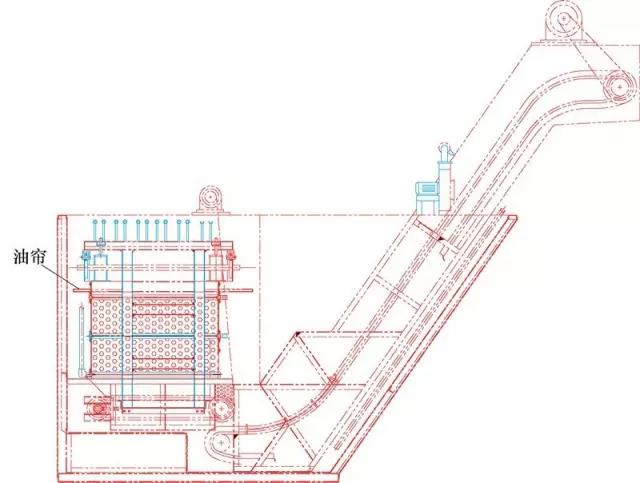 網(wǎng)帶爐的落料斗常見形式有直落式和斜落式兩種:直落式適用于處理中小規(guī)格的軸承零件,斜落式適用于處理中大規(guī)格的軸承零件。從軸承光亮性角度分析,直落式明顯優(yōu)于斜落式:因為斜落料的零件滑入淬火油后時會不可避免地濺起大量油珠落到落料板上,之后的零件在落料斗上滑過時端面會由于沾到這些淬火油而極易產(chǎn)生黑斑。而直落料結(jié)果則不存在該問題,且油幕簾能夠更好的將淬火油煙封住,防止其竄入爐膛,影響爐膛氣氛或附著套圈表面而造成套圈光亮性不佳。